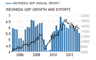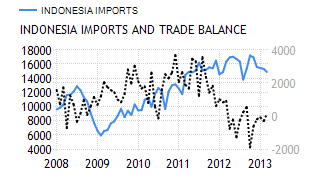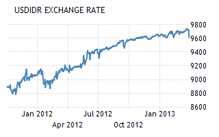 Indeed, in the fourth quarter of 2012, the GDP rose 6.10 percent, boosted by private consumption. In addition, in the last three months of 2012, industrial production grew an average 16 percent a month, supported by high levels of investment as foreign and domestic companies were trying to meet surging demand from the rapidly expanding middle class. In fact, in February, retail sales recovered and expanded by 13.9 percent from a year earlier. On the negative side, in April, inflation rate was reported at 5.6 percent, well above the central bank target range, and mainly due to a rise in food prices. To make things even worse, despite the rupiah depreciation, depressed global demand and lower prices of commodities still weight on exports, which in February dropped for the third month in a row. More importantly, in 2012, due to surge in imports and drop in shipments, current account deficit reached 24.18 billion USD compared with a surplus of 1.7 billion USD in 2011, raising concerns among investors about the sustainability of high growth rates.